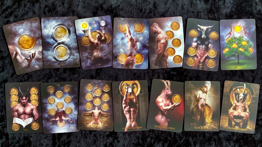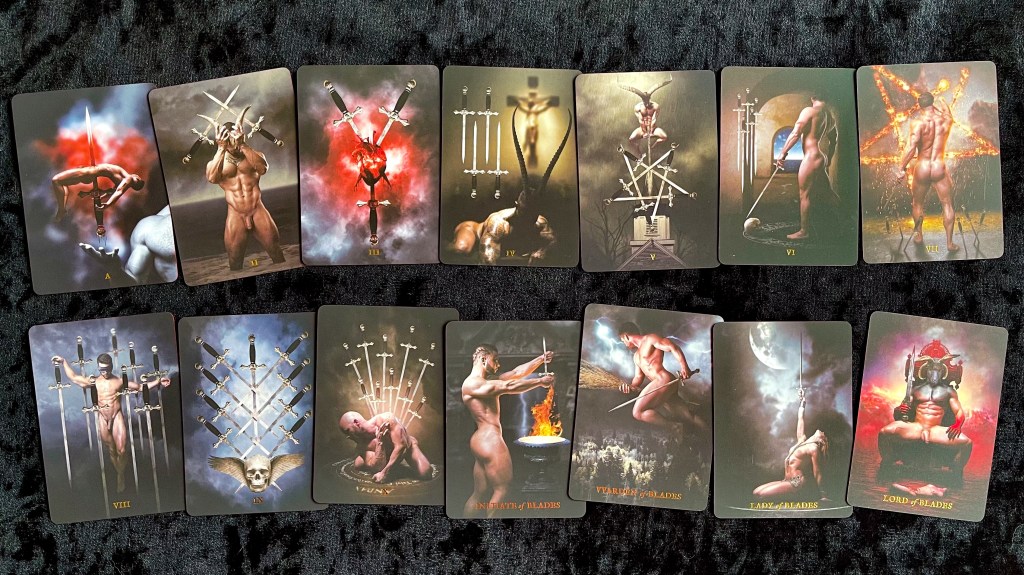 因此,這副牌有大量裸露畫面🔞。由於攝影師為男同性戀者,所以卡牌人物主要是滿身肌肉的男性裸體。