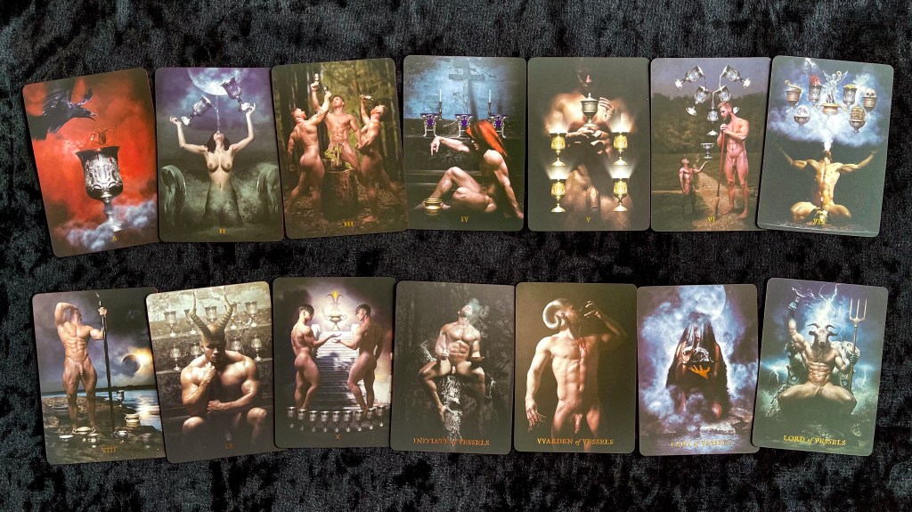 每張塔羅牌的圖像可說是在描述當晚聚會的情況,他們在畫魔法陣、表演器具、在舞蹈,喝酒等等,非常精彩。總而言之,應該要幫 Sabbath Tarot 正名為<巫師聚會塔羅牌>。