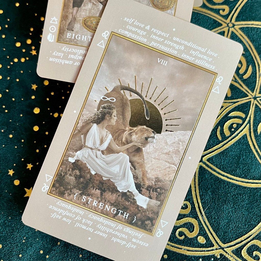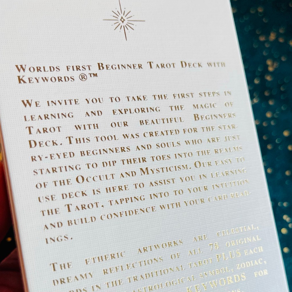 另外,我也很喜歡牌面加入的 keywords 關鍵字和占星符號,作者 St. Soleli 更註明是世界上第一副具有關鍵字的新手塔羅牌。好適合「出貓」用,同時學英文都得。
