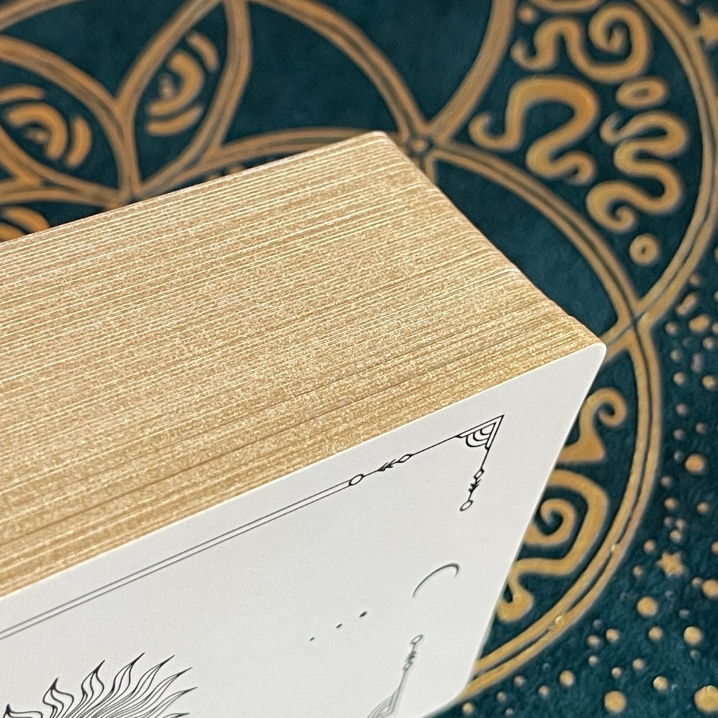 Lucid Dreams Tarot 最搶眼的是牌面有燙金設計,無論是牌面、牌背、牌邊,在光線下都映出金屬閃光。不過,我個人覺得,第三版的燙金效果比第二版收斂🧐。