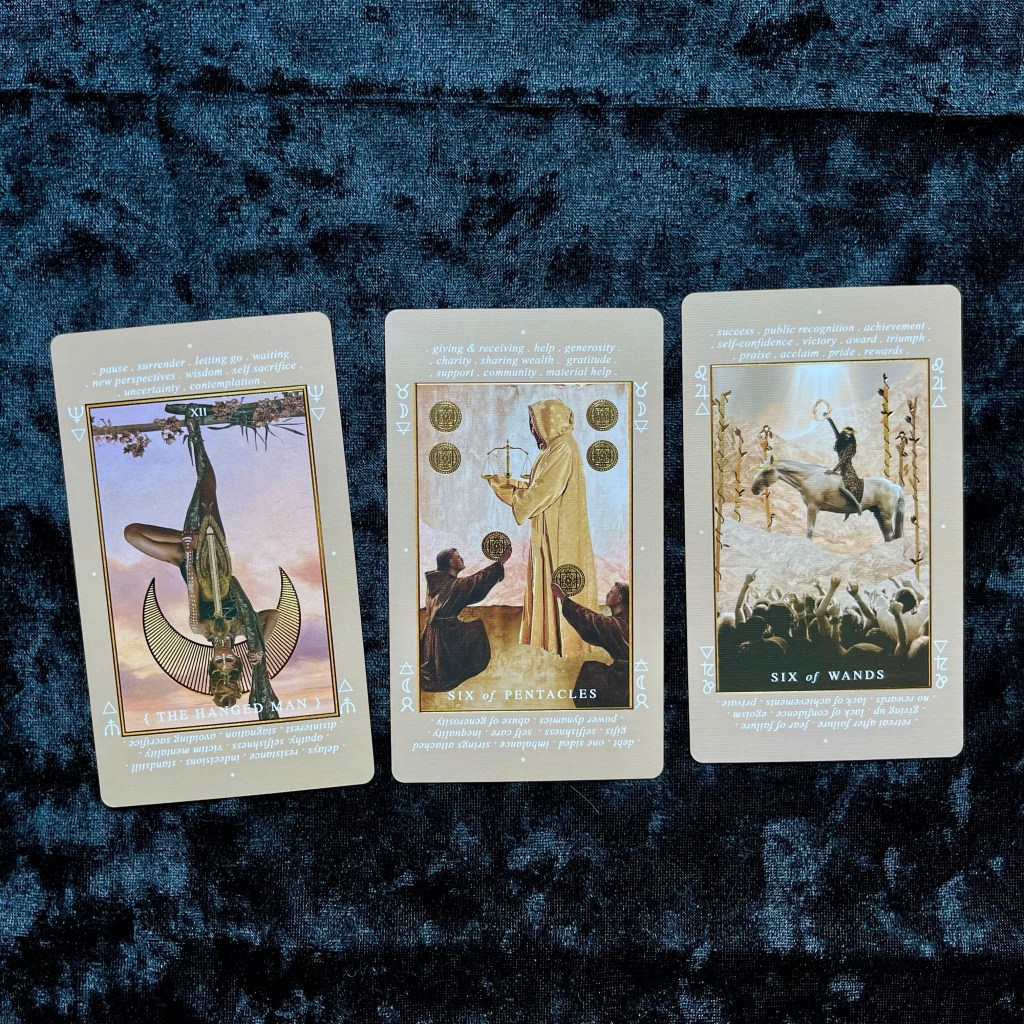 [6 of Pentacles] 錢幣6。見到中間個人企高一級,同下邊兩個人有啲距離,感覺疏離。