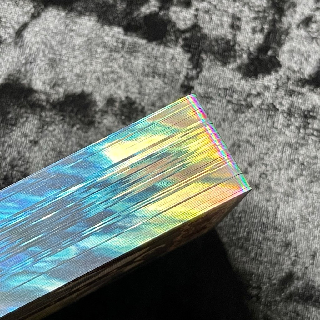 Broken Mirror Tarot 最著名就是以破碎鏡片的畫風設計出各款塔羅圖案,牌邊為黑色窗框設計,似是教堂彩色玻璃窗畫一樣。來到第五版,每張牌的碎塊更細緻,元素更多,也重新演繹不少牌,跟傳統偉特相差甚多,因此相當有趣。