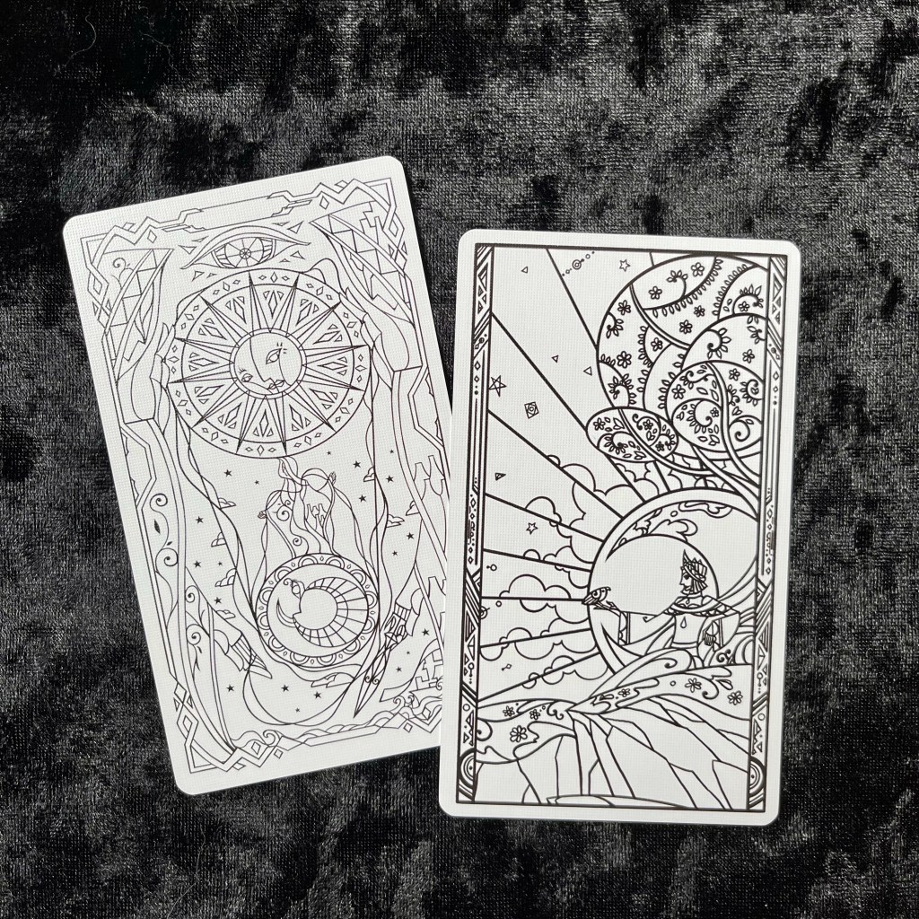 卡牌以偉特塔羅系統設計,包括 22 張大牌和 56 張小牌,我買的 Kickstarter 版本更多兩張黑白掃描牌及一張特別牌 ,即共有 81 張牌,可是,嚴格來說,能用於開牌的應該只有那一張特別牌而已。