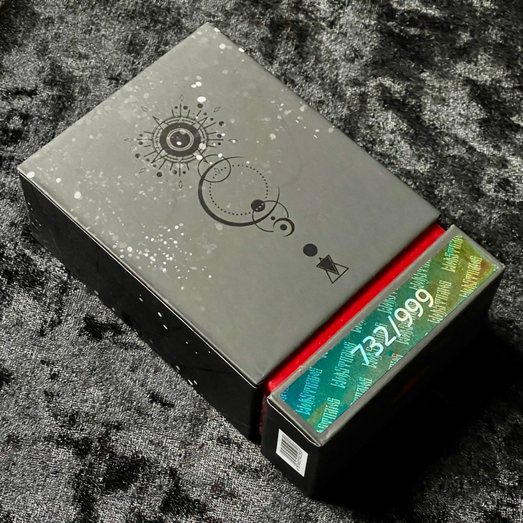 Obsidian 是黑色硬皮紙盒設計,打開後,露出內盒的紅色設計,非常搶眼,由黑轉紅也有視覺震撼。硬背底部印有鐳射號碼字款,是 Kickstart 版獨家限定🤭