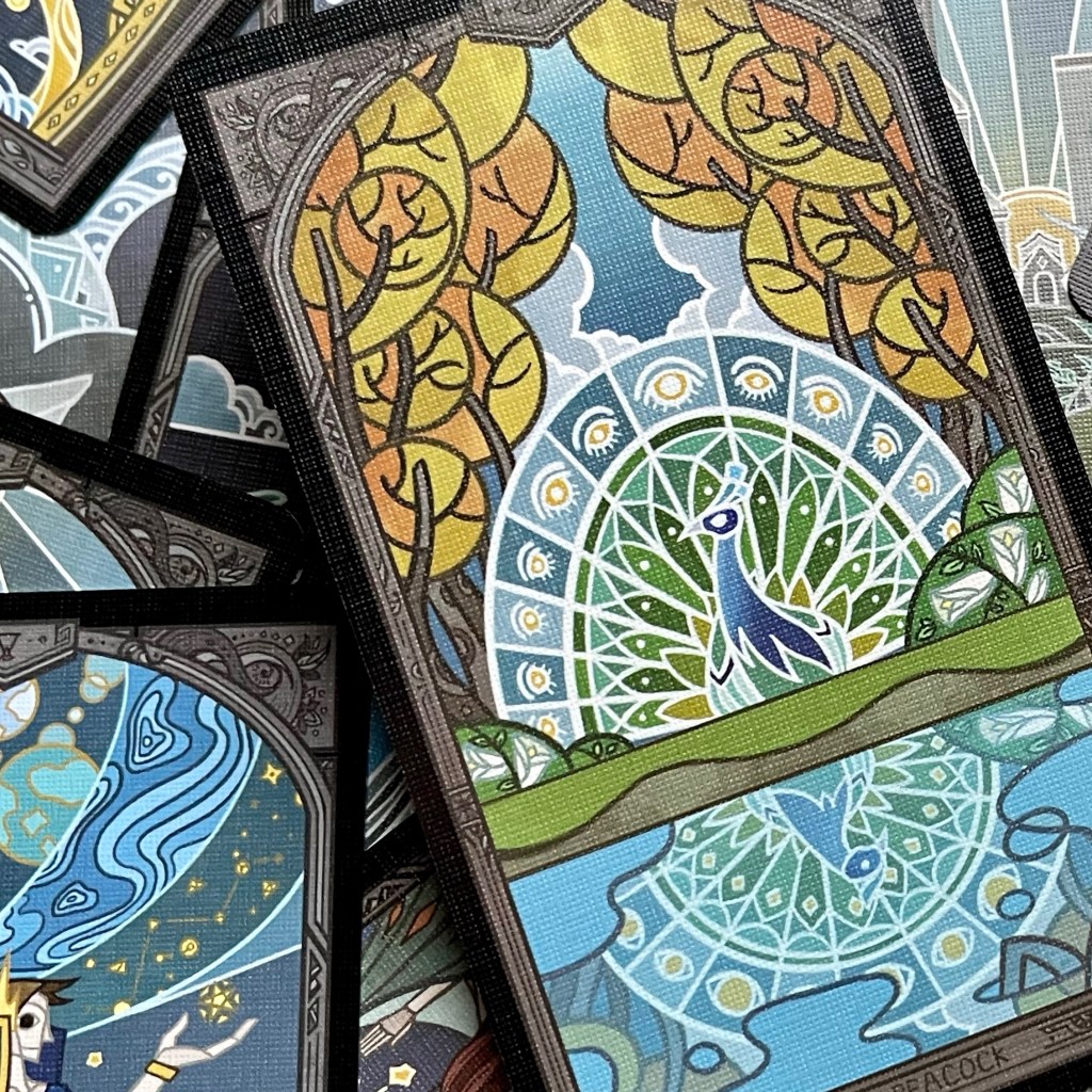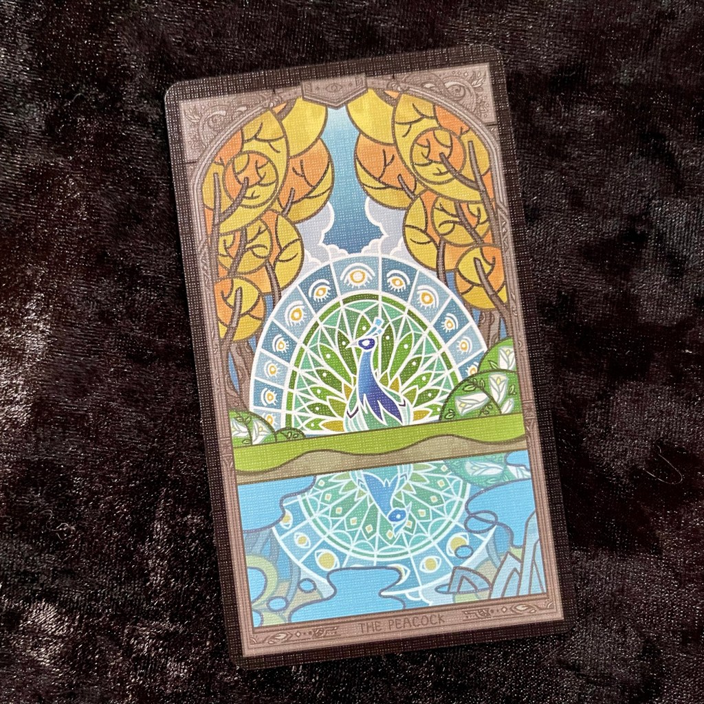 特別牌是 The Peocock,看到一隻孔雀在水池旁開屏,展現牠每根羽毛的美麗,兩旁有金黃色的樹,更具氣勢。孔雀代表高貴、好運及富裕等美好意思,抽到這張牌應該很高興。