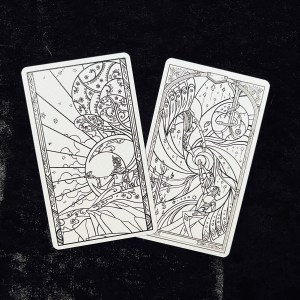 卡牌以偉特塔羅系統設計,包括 22 張大牌和 56 張小牌,我買的 Kickstarter 版本更多兩張黑白掃描牌及一張特別牌 ,即共有 81 張牌,可是,嚴格來說,能用於開牌的應該只有那一張特別牌而已。
