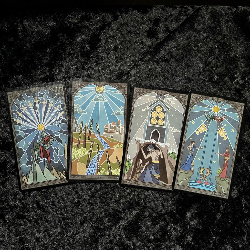 大牌之中,我覺得最特別是 The Hermit 牌,我看到 Hermit 打開他的衣袍,展現出他以前冒險的事蹟,分享給我們。最有趣是入面藏了一個小聖杯,是在向後輩溝通吧?