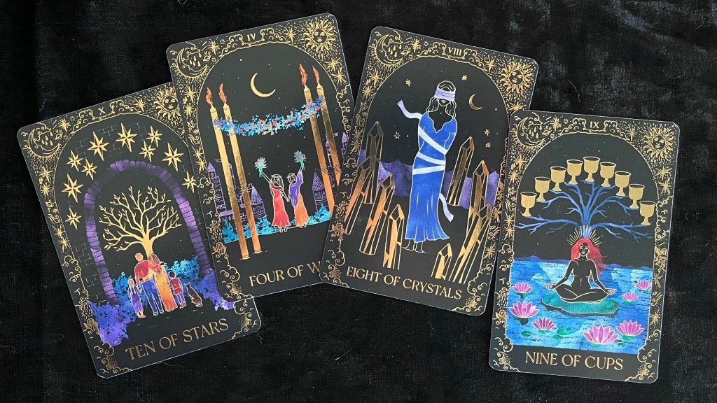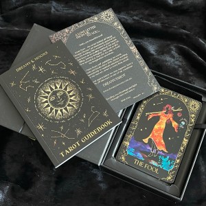 最近入手這副包裝很高貴的 Dreamy Moons Tarot,幫它改了個中文名叫「夢月塔羅牌」。作者為澳洲 Annie Tarasova,希望藉着這副牌幫助塔羅師更容易聯絡宇宙,尋找潛意識的真實感受。