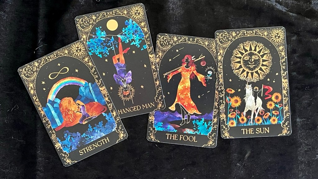 例如 The Fool 那一身橙黃混色長裙,就像漆黑中的螢火蟲一樣,咁鮮明,咁出眾。Strength 橙色獅子和藍色土地,反差感極大,那一抹彩虹更是神來之筆。
