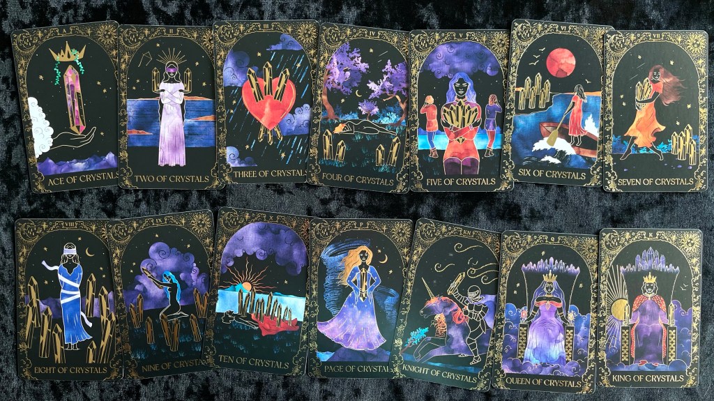 我明白用 Crystals 代替 Swords 可能是外型相似,同樣是筆直而尖銳,而 Stars 可能是一顆顆的似錢幣吧?