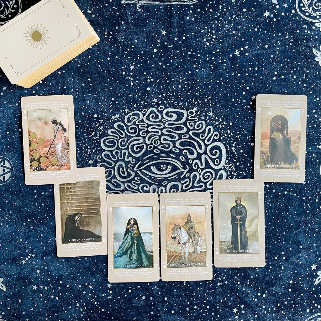 [7 of Swords] 寶劍7。見到那個人搖身一變,變做黑衣人,拎住啲嘢走。感到佢反轉豬肚,仲好有攻擊性。